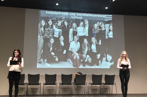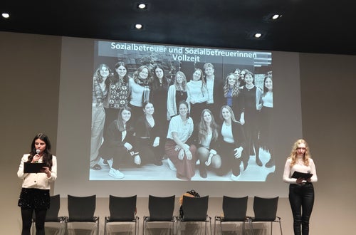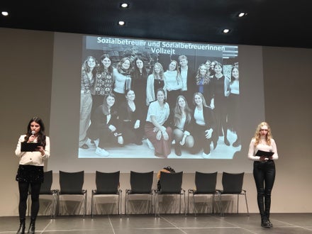 Wie es bereits Tradition ist, wurde die Abschlussfeier von den Absolventen der Ausbildung zum Sozialbetreuer bzw. zur Sozialbetreuerin selbst geplant, organisiert und gestaltet. Dabei übernahmen sie nicht nur die Dekoration und Moderation, sondern boten auch kreative und künstlerische Einlagen auf der Bühne und sorgten für das leibliche Wohl der Gäste.