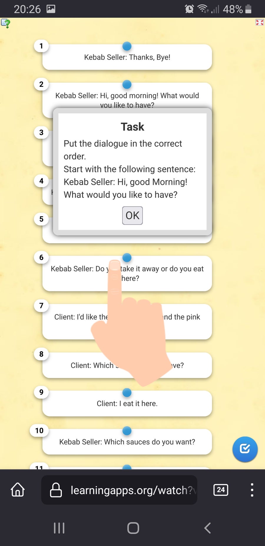 With the help of the IT teacher, we digitalised the dialogues. Then we corrected the mistakes in our texts, we learned how to edit a Word document to create a dialogue game with cards, which would be printed out later on, how to edit the document for the solutions to our dialogues and how to use the online platform “LearningApps.org” with which it is possible to create many games to make studying fun. We also tried the dialogue game on our phones with the QR-code we created after having finished to write them on the online platform.