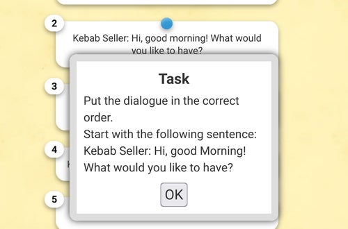 During the English lessons in autumn, we read dialogues about people in different settings. We also got to know and used translation apps and websites on our phones, which we can use in our daily life should we need to translate something quickly. Then, the teacher gave us different topics and we brainstormed for ideas for dialogues about real life situations. Afterwards, we formed groups of two to three people and chose one or two of the topics to write a dialogue about in English. While inventing the dialogues we thought about real situations we have been in or situations which could happen to us. We started writing the dialogues and sometimes also used the translation apps. Then we handed in our dialogues and the teacher corrected them.