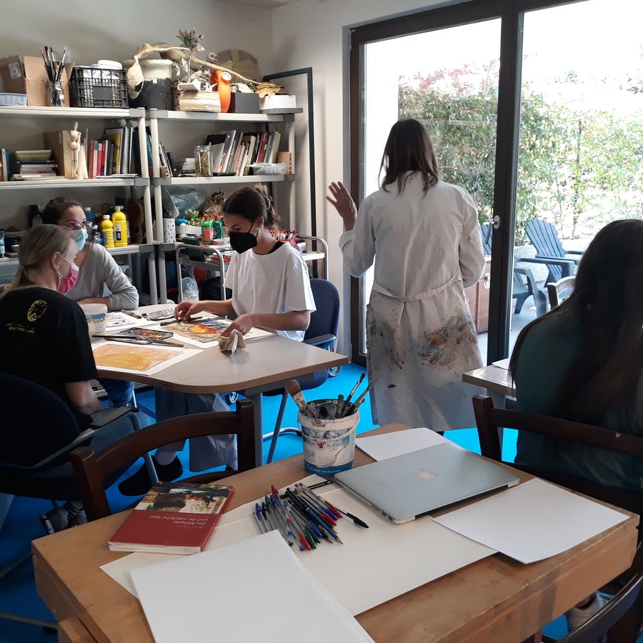 Eine ganz neue Erfahrung machte eine Ausbildungsklasse der Kinderbetreuer*innen im Malatelier von Ulrike Hofmann und Francesca Mantovano nach dem pädagogisch-kreativen Vorbild von Arno Stern.